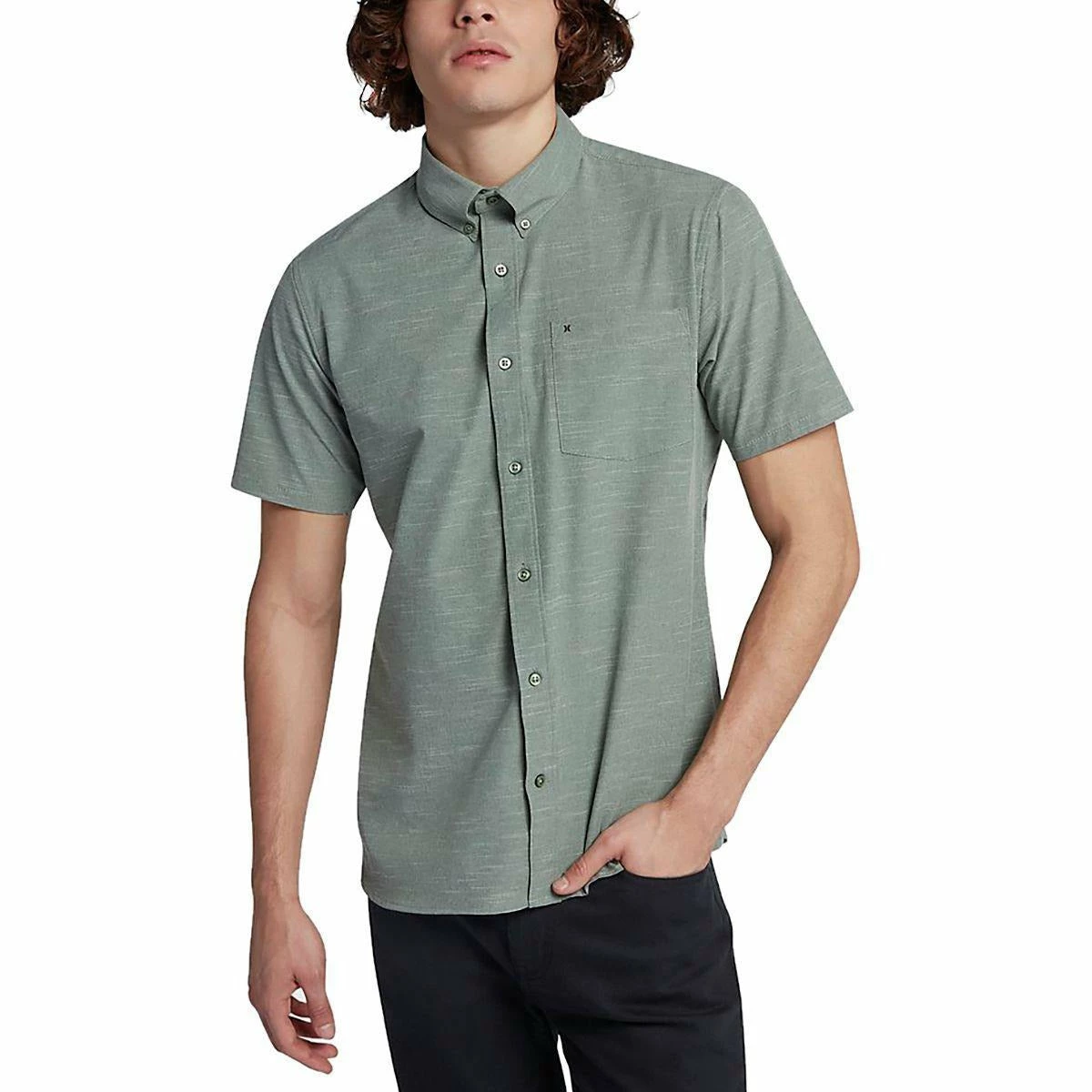 The Hurley Alchemy Shirt will have you looking great for a fun day in the sun! It feaures a textured, slub Phantom stretch fabric for ease of movement and style, in or out of the water.