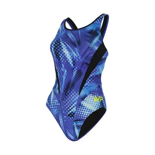 Aqua Sphere MP Team Mesa Print Comp Back Female, vibrant form fitted suit with great coverage. Inspired by Olympian gold medalist Michael Phelps. With Durable fabric and 100% Polyester.