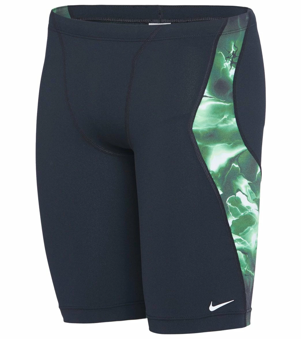 Nike Swim Men’s Lightning Jammer is built for speed. The sleek, form-fitting suit features a front gusset and internal front lining for a better fit and modesty. An interior drawcord lets you adjust the racing jammer while flat seams help reduce chafing to ensure your comfort during laps. Nike HydraStrong fabric stands up to the rigors of regular wear during practices and competitions.