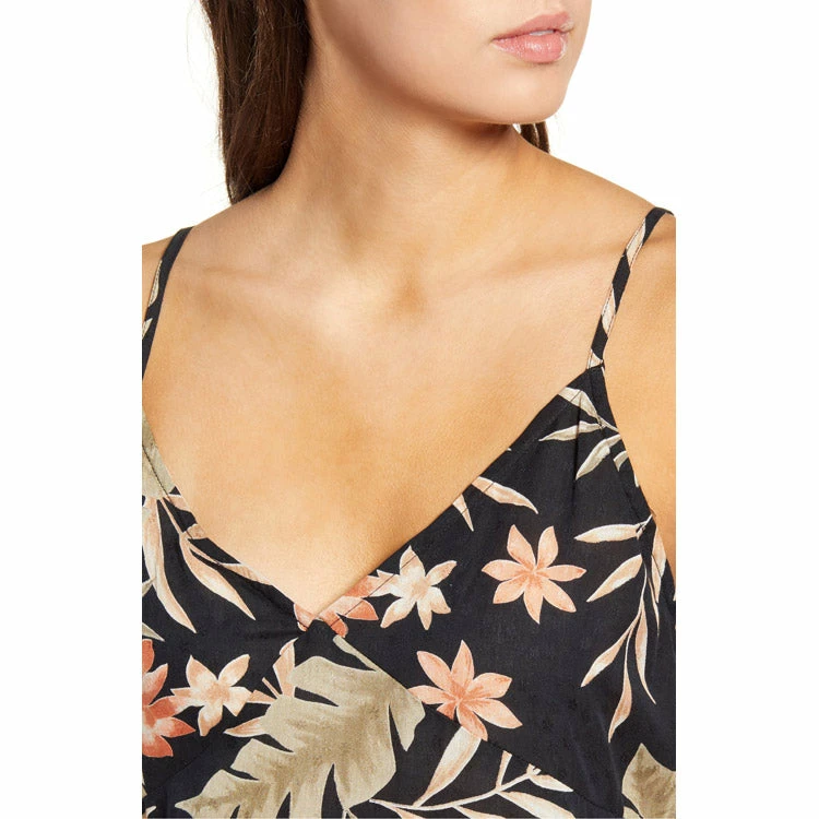 Vibrant tropical blooms enliven this vacation-ready maxi topped with slinky straps and punctuated with a leg-flaunting front opening.