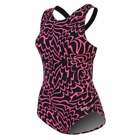 Stay confident and happy in our functional and durable AQUASHAPE Conservative Lap Suit in our Lotus print. Perfect for any aquatic activity!