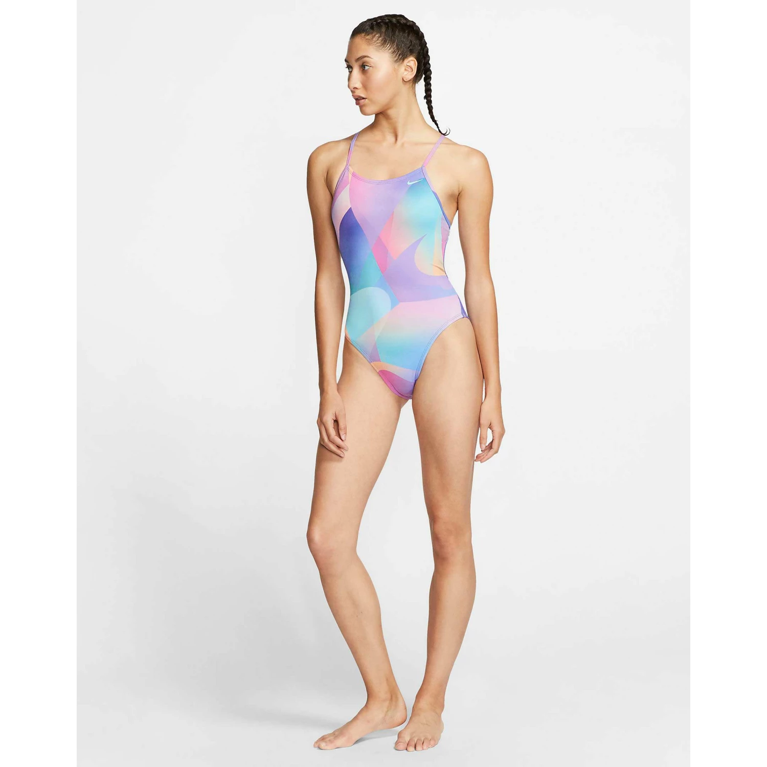Be visible in the Nike Spectrum Lace Up Tie Back One! Ideal for low-impact and less distraction, this light bust support suit offers skinny straps, cheeky bottom coverage for flattering freedom of movement, and flat seams to prevent chafing. The 100% polyester lining provides a better fit and support, while the Hydrastrong fabric will maintain its performance and vibrancy for many swims to come.